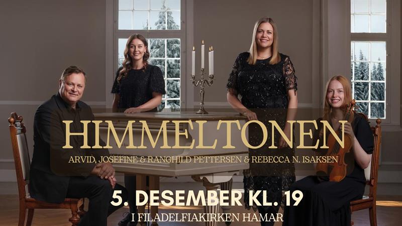 Julekonserten Himmeltonen med Arvid, Ragnhild og Josefine Pettersen & Rebecca N. Grimstad i Filadelfiakirken Hamar. Billetter selges i døra