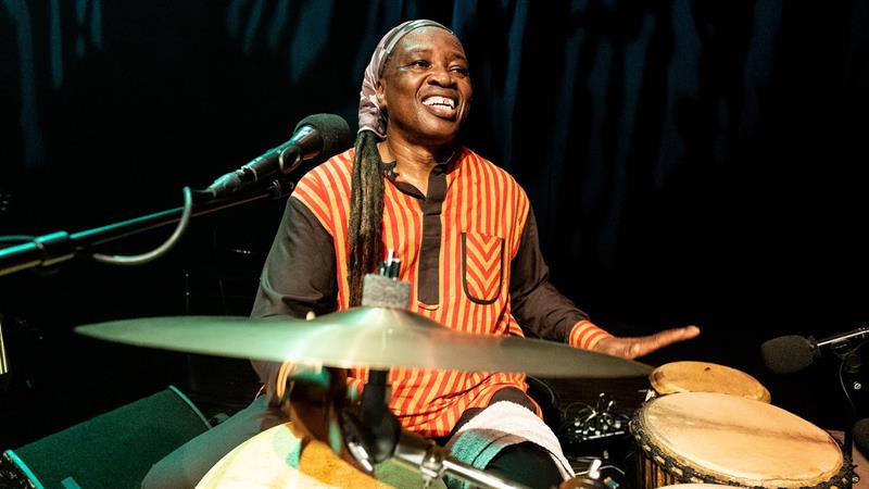 Her blir det ikke bare musikalsk mimring. Den vitale superperkusjonisten, band og dansere er forenet i en evig søken etter nye uttrykk.